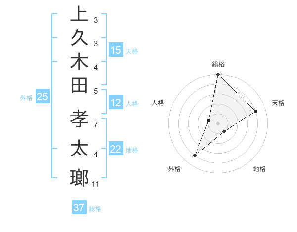 上久木田 孝太瑯さんを姓名の画数から五運を鑑定