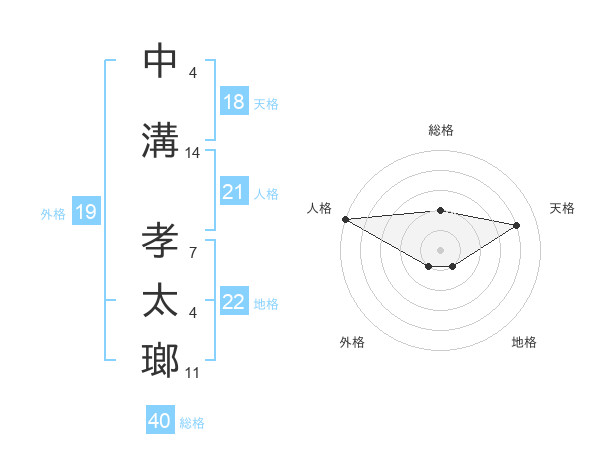中溝 孝太瑯さんの地格は22画の1点!