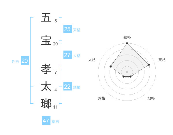 五宝 孝太瑯さんの総格は47画の5点!
