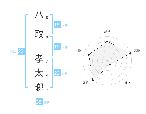 八取 孝太瑯さんを姓名の画数から五運を鑑定