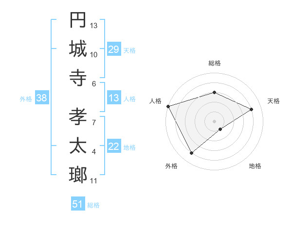 円城寺 孝太瑯さんを姓名の画数から五運を鑑定