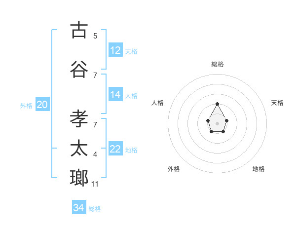 古谷 孝太瑯さんの総格は34画の2点!