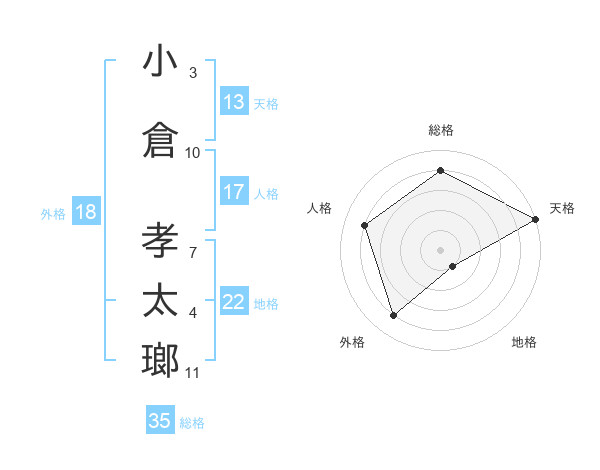 小倉 孝太瑯さんを姓名の画数から五運を鑑定