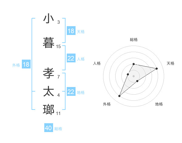 小暮 孝太瑯さんの天格は18画の4点!
