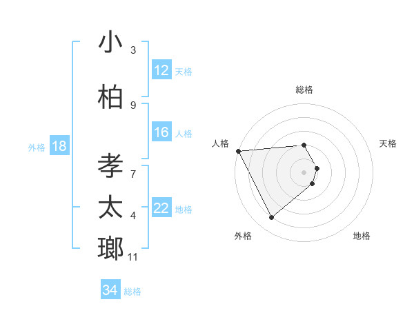 小柏 孝太瑯さんを姓名の画数から五運を鑑定