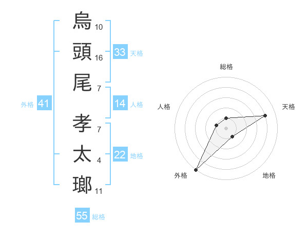 烏頭尾 孝太瑯さんの総格は55画の1点!