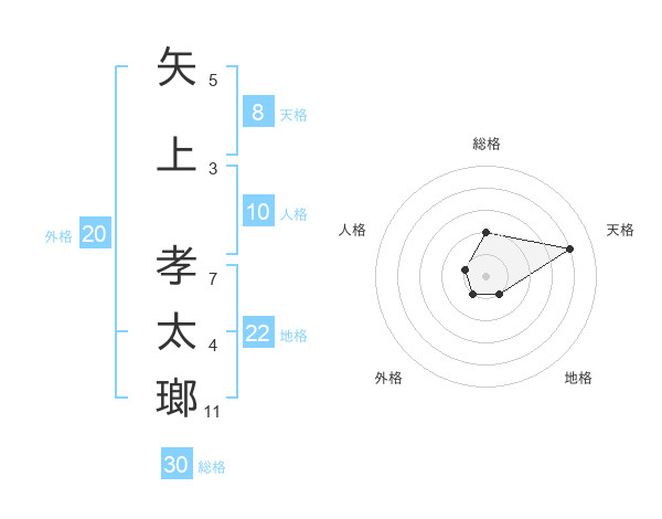 矢上 孝太瑯さんの天格は8画の4点!