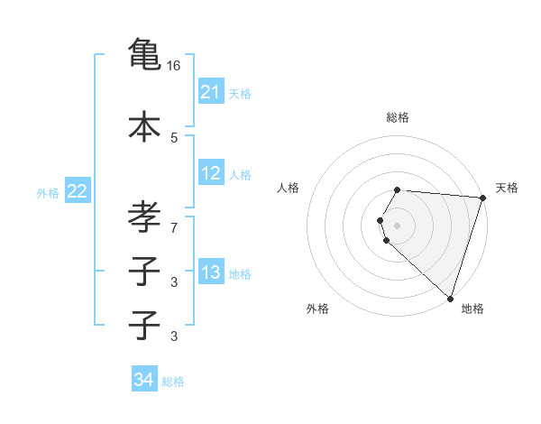 亀本 孝子子さんを姓名の画数から五運を鑑定