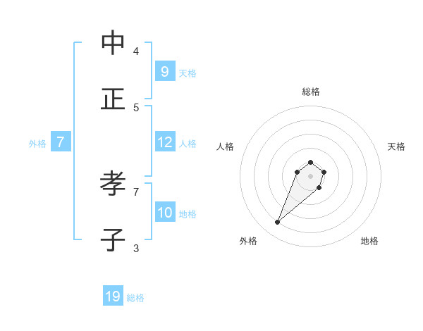 中正 孝子さんの総格は19画の1点!