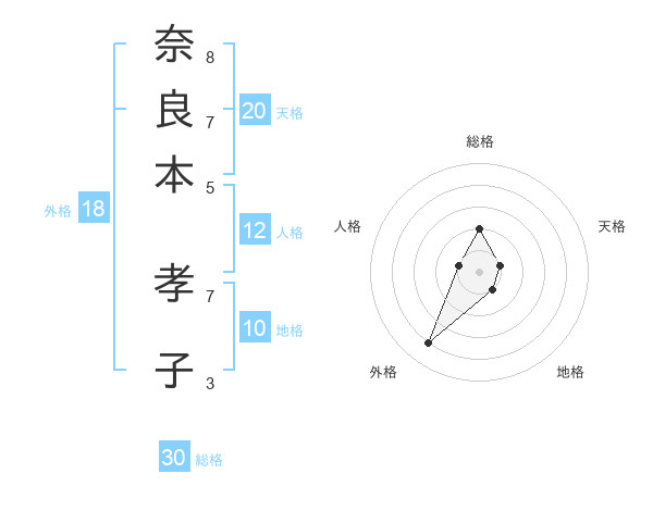 奈良本 孝子さんの総格は30画の2点!