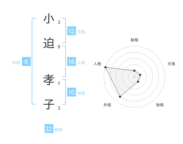小迫 孝子さんを姓名の画数から五運を鑑定
