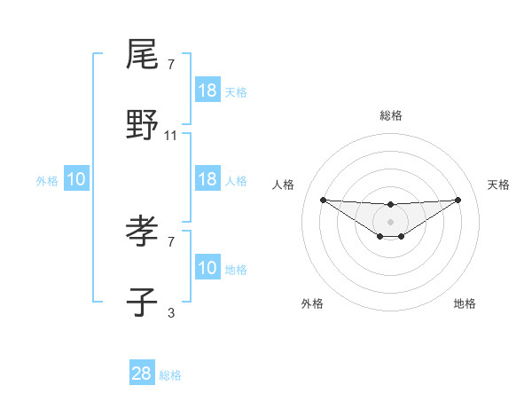 尾野 孝子さんの人格は18画の4点!