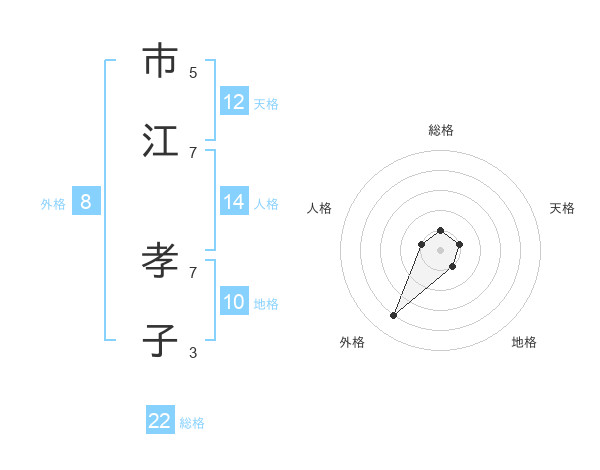 市江 孝子さんの総格は22画の1点!