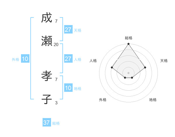 成瀬 孝子さんを姓名の画数から五運を鑑定