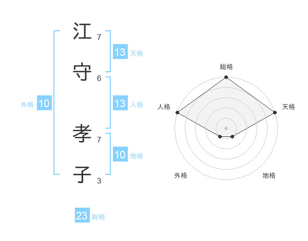 江守 孝子さんの天格は13画の5点!