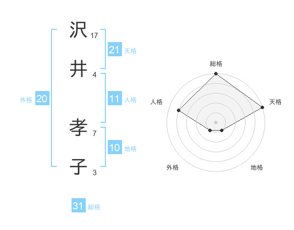 沢井 孝子さんの天格は21画の5点!