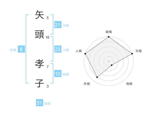 矢頭 孝子さんを姓名の画数から五運を鑑定
