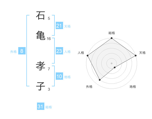 石亀 孝子さんを姓名の画数から五運を鑑定