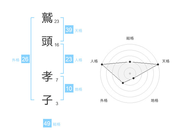 鷲頭 孝子さんの総格は49画の2点!