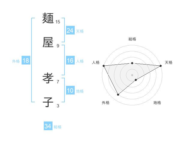 麺屋 孝子さんの天格は24画の5点!