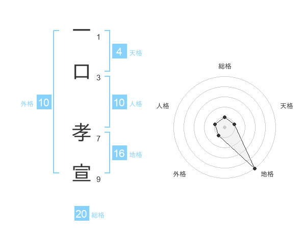 一口 孝宣さんの総格は20画の1点!