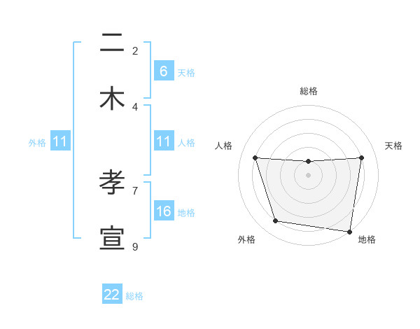 二木 孝宣さんの外格は11画の4点!