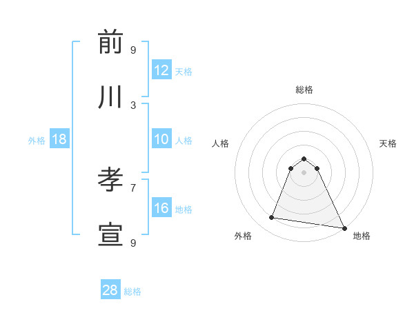 前川 孝宣さんの天格は12画の1点!