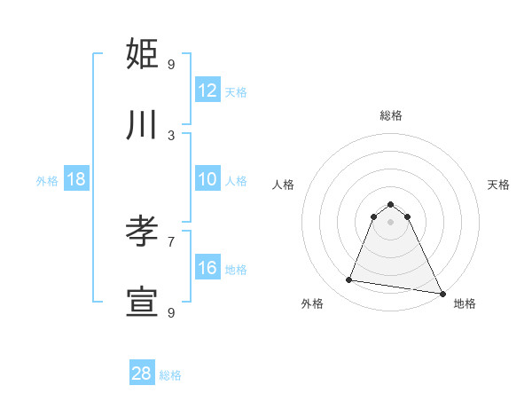 姫川 孝宣さんの天格は12画の1点!