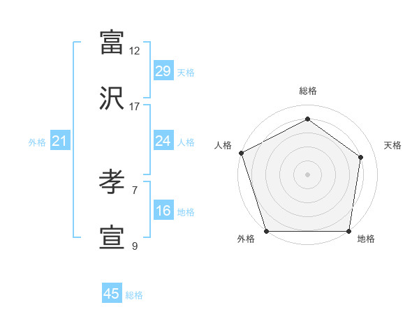 富沢 孝宣さんを姓名の画数から五運を鑑定