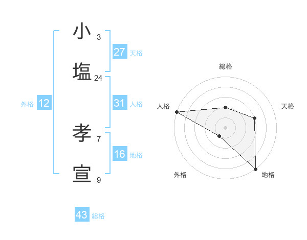小塩 孝宣さんを姓名の画数から五運を鑑定