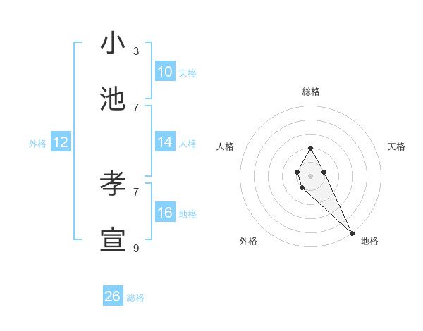 小池 孝宣さんの天格は10画の1点!
