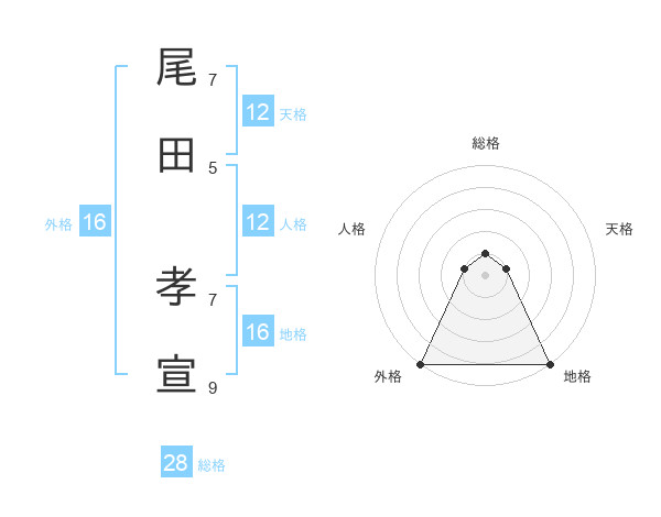 尾田 孝宣さんを姓名の画数から五運を鑑定