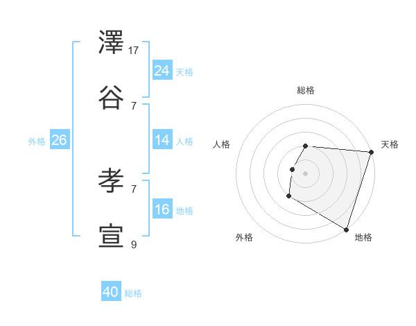 澤谷 孝宣さんを姓名の画数から五運を鑑定