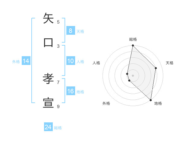 矢口 孝宣さんの天格は8画の4点!