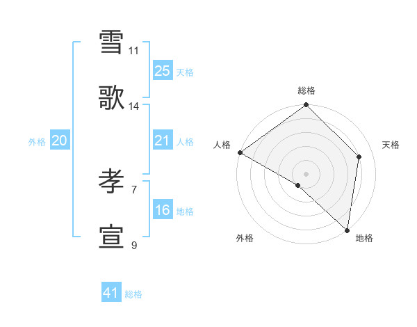 雪歌 孝宣さんの天格は25画の4点!