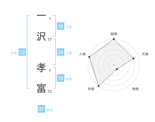 一沢 孝富さんを姓名の画数から五運を鑑定