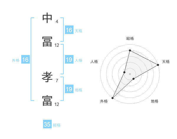 中冨 孝富さんの天格は16画の5点!