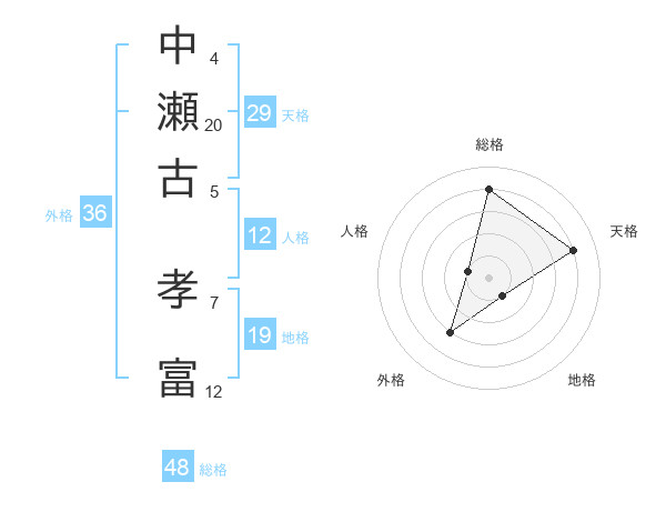 中瀬古 孝富さんの総格は48画の4点!