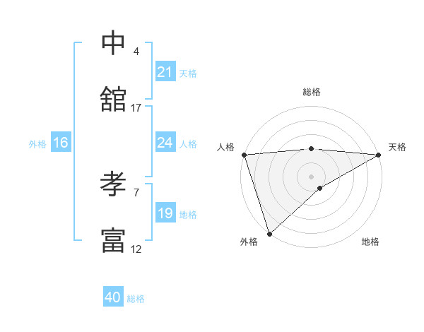 中舘 孝富さんを姓名の画数から五運を鑑定