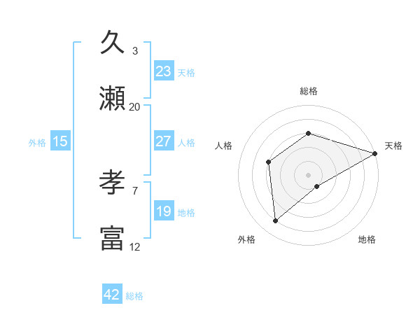 久瀬 孝富さんの天格は23画の5点!