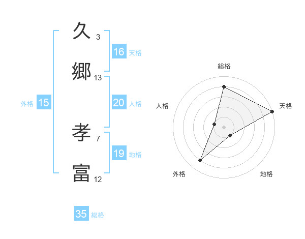 久郷 孝富さんを姓名の画数から五運を鑑定