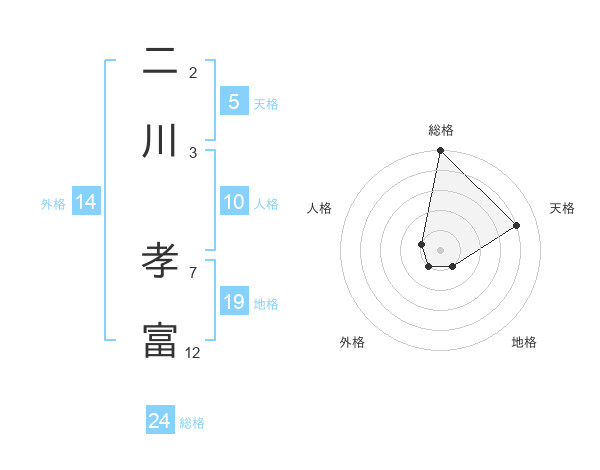 二川 孝富さんの総格は24画の5点!