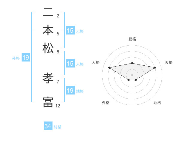 二本松 孝富さんの天格は15画の4点!