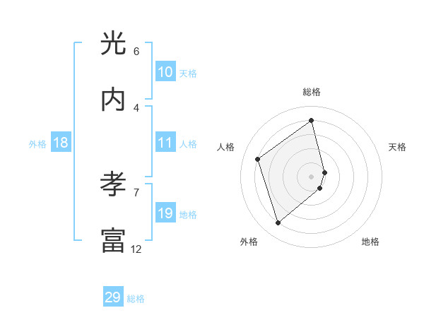 光内 孝富さんの総格は29画の4点!