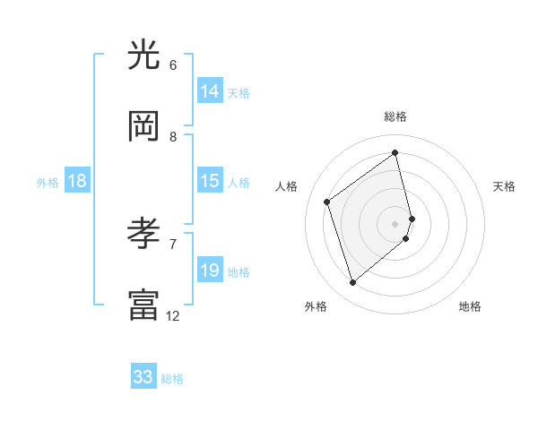 光岡 孝富さんの総格は33画の4点!