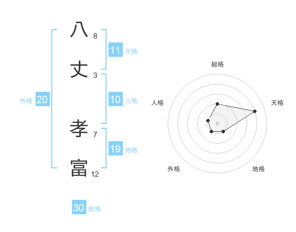 八丈 孝富さんを姓名の画数から五運を鑑定