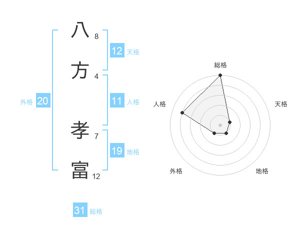 八方 孝富さんの総格は31画の5点!
