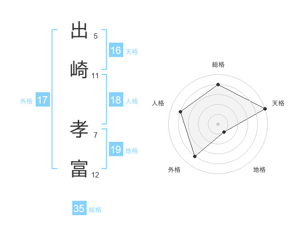 出崎 孝富さんの総格は35画の4点!