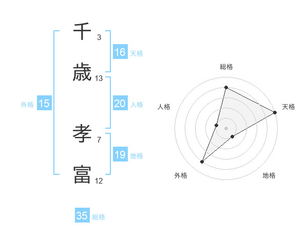 千歳 孝富さんの総格は35画の4点!