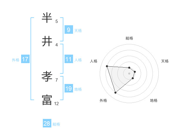 半井 孝富さんの総格は28画の1点!
